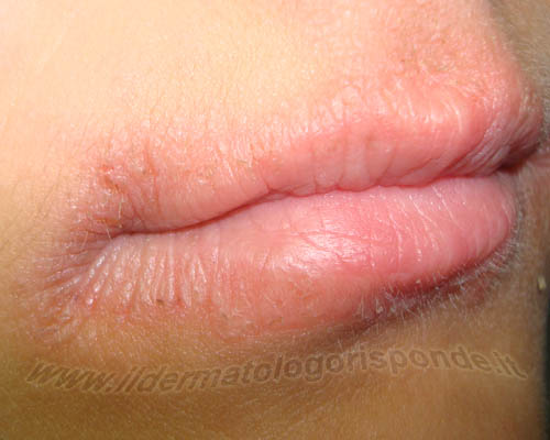 Dermatite atopica delle labbra (bocca atopica o cheilite atopica) e delle pieghe degli arti (foto in basso)